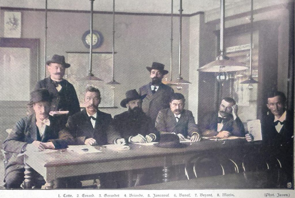 Wanderungen durch das große nordfranzösische Streikgebiet des Pas-de Calais scheinen dem Fernstehenden bei den mannigfachen Unruhen und immer neuen Verwicklungen der Schlichtungsversuche gefährlich für Körper und Leben. Aber wer dorthin kommt und mit offenen Sinnen durch das „schwarze Land“, das teils der Kohle, teils der streng klerikalen Gesinnung wegen so genannt wird, durch die einförmige Landschaft von Lens und durch die freundlicheren Gegenden von Anzin und Valenciennes schreitet, wird trotz aller Aufmerksamkeit nicht allzuviel von dem Generalstreik und seinen Folgen merken. Die Führer der großen Bewegung haben das Verdienst, ihre Gefolgschaft immer wieder zur Ruhe und zur Besonnenheit gemahnt zu haben, und sie haben mit ihren Arbeitern die Befriedigung, daß allenthalben die bedauerlichen Zusammenrottungen und Zusammenstöße mit dem Militär nur den schlechten, einen kleinsten Teil der Arbeiterschaft darstellenden Elementen zugeschrieben werden. So sieht man auf den Bahnhöfen und längs der Bahndämme starke militärische Besatzungen, man begegnet ab und zu einem Detachement berittener Jäger oder einer Schwadron Kürassiere, die das Land durchstreifen und nach der Ordnung sehen, aber sonst – abgesehen von den wenigen ernsten Ereignissen – ist Stille und Frieden ringsum, und die 20 000 streikenden Arbeiter harren in Ruhe, beinah in Phlegma der Entscheidung über die strittige Lohnfrage. Unter den mannigfachen Führern, die in dieser Bewegung besonders hervorgetreten sind, ist neben dem sozialistischen Maire von Lens, dem Deputierten und einstigen Kohlenminenarbeiter Basly, der ehemalige Sergeant und jetzige Sekretär des Bergmannssyndikats von Anzin, Bexant, den wir in nebenstehender Abbildung bringen, der einflußreichste und bedeutendste. Er war es, der sämtliche zunächst unschlüssigen Arbeiter des großen Kohlenbeckens von Anzin bewog, mit den Arbeitern der Bergwerksortschaften des Pas-de-Calais und Nordbezirks in den Ausstand zu treten. Er predigte und agitierte unablässig in den „Corons“, den großen Bergarbeiterdörfern, in denen sich in allen Bezirken die Bergleute dicht gedrängt Haus an Haus angesiedelt haben. Die Corons, die durchweg von arbeitsamen, nüchternen und ziemlich wohlhabenden Besitzern zeugen, sind so trotz ihrer äußerlich häßlichen Form ein freundliches Zeichen vom Fleiß dieses Volkes und vom Segen der Arbeit.