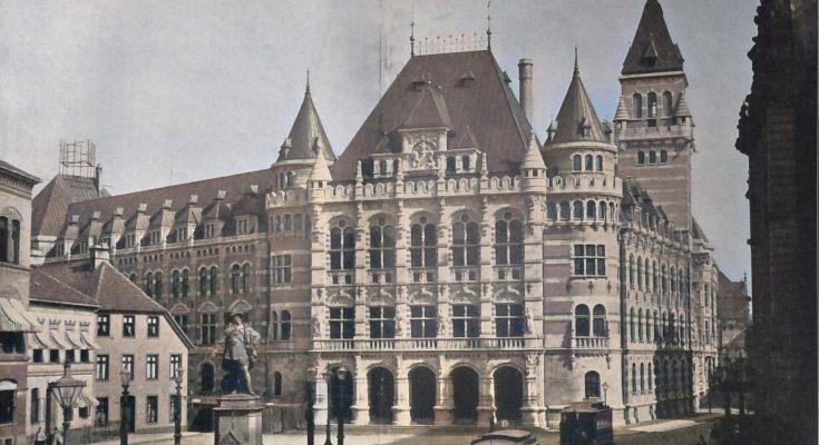 Das Gerichtsgebäude, ein weiterer Neubau Bremens, ist kürzlich eingehend in diesen Blättern gewürdigt worden. Im Bilde wirkt es besser wie in Wirklichkeit, wo mich die unverständliche Abwechselung von rothen und gelben Ziegeln etwas störte; aber das sind Kleinigkeiten, neben dem herzerquickenden selbständigen Charakter und der Frische des Ganzen.