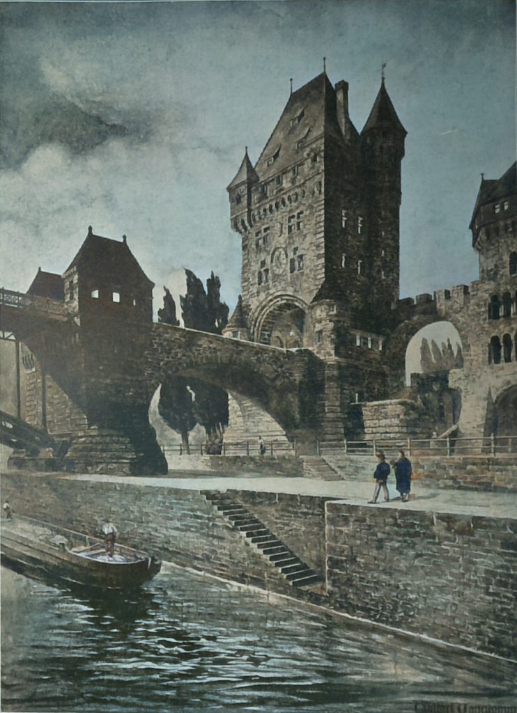 Es ist das um so erfreulicher, als es sich gezeigt hat, dass dieses Miteinanderarbeiten der beiden Schwesterkünste in dem vorliegenden Falle reiche und schöne Früchte gezeitigt hat. Mit dieser Brücke wird die alte Stadt der Nibelungen, die einst im Mittelalter so prächtig blühte und die nun nach einer langen Zeit des Darniederliegens mit dem jungen Reiche wieder kräftig emporstrebt, einen neuen bedeutenden Schmuck erhalten zu den mancherlei Zierden, die im Laufe der letzten Jahre in ihren Mauern erstanden sind. Worms ist darin glücklicher, als andere Städte in deutschen Landen; jeder Nutzbau ist dieser Stadt ein Schmuckbau geworden. Ihre neuen Bauten bilden sowohl nach technischer wie nach künstlerischer Seite hin ein Vorbild für den bauenden Bürgersmann. – Wie dieser Einfluss wirkt und welches Verständniss die edle Baukunst in Worms findet, das zu sehen ist eine Freude für jeden Kunstsinnigen, der Gelegenheit gehabt hat, Worms zu besuchen.