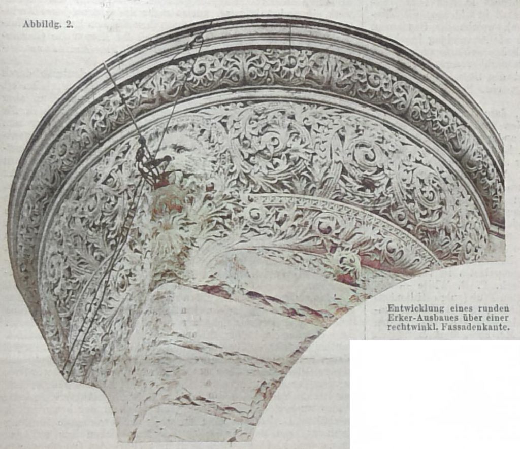 Abbildg. 2 – Entwicklung eines runden Erker-Ausbaus über einer rechtwinkl. Fassadenkante