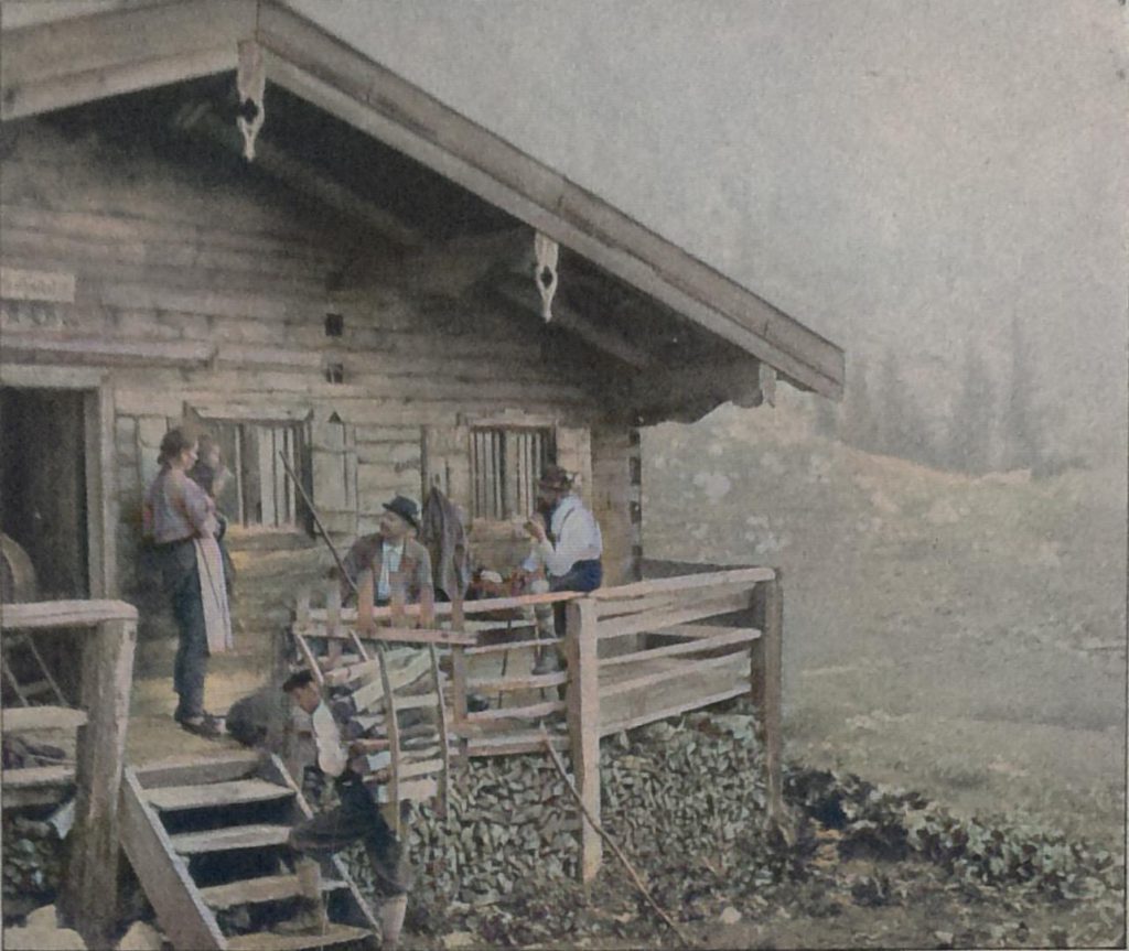 Die großartige Thätigkeit des deutsch-österreichischen Alpenvereins zur „Aufschließung“ der herrlichsten Teile der deutschen Alpen hat die Almahütten-Poesei“ in zweite Linie geschoben. Jeder Hochtourist strebt heute zum Uebernachten nach einer „Unterkunftshütte“ mit ihrer Behaglichkeit und dem verhältnismäßig immer großstädtisch guten „Papperl“, das dem „ewig Käsernen“ der Almhütte und ihren verschiedenen „Miliarten“, als da sind: die „G’stöckelte“, „A’grahmte“ und so fort denn doch von einem „Stadtfrack“ vorgezogen wird.