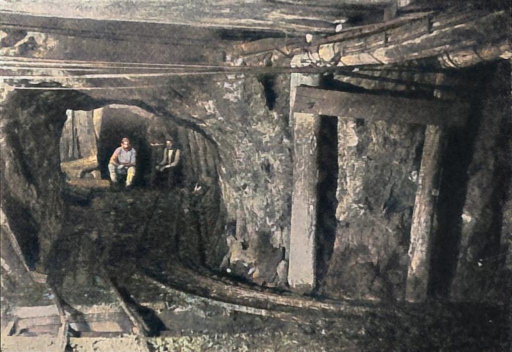 Das durch den unterirdischen, den Tiefminenbetrieb, gewonnene Gestein wird natürlich an denselben Stätten genau in derselben Weise behandelt, wie das Produkt der offenen Mine. Das Treiben dort unten in den verschiedenen „Levels“, deren zur Zeit tiefste in der Kimberleymine 2000 englische Fuß unter der Erdoberfläche liegt, hat etwas Beängstigendes an sich. Die enorme Hitze an manchen Stellen, mit feuchter, durch Wassergerinnsel erzeugter Kälte abwechselnd, die dort unten in den breiten, mit Schienen belegten Stollen herrscht, das furchtbare Lärmen und Toben der herabrollenden Gesteinsmassen, das Rasseln der auf und abrollenden Förderwagen, das Hin- und Herhuschen der nackten Kafferngestalten in dem Dämmerlicht der schmäleren, durch Kerzenlicht spärlich erhellten Seitenstollen, dann wiederum das unheimliche Donnergeräusch von Dynamitsprengungen, oben und unten, links und rechts, das wahre Bergstürze erzeugt, das Sausen der Ventilatoren – alles das zusammengenommen macht einen nervenerschütternden Eindruck. Durch das Bewußtsein, daß man fast tausend Meter unter der Erdoberfläche wandelt und daß jeden Augenblick von irgendeinem Seitenstollen ein Schlammsturz mit Windeseile, todbringend hereinbrechen kann, erhöht diesen Eindruck recht nachhaltig.