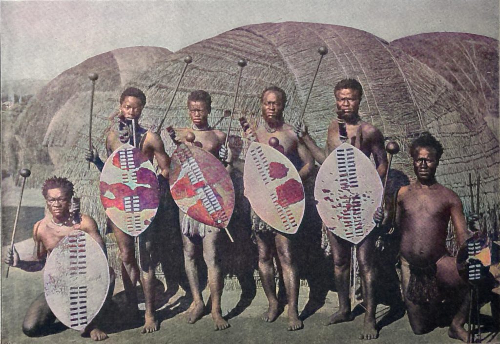 Gewagt haben sie es freilich nicht, sich so ganz offen mit jenen „Wilden“ zu verbinden, obwohl sie sie in früherer Zeit thatsächlich oft genug als Vorspann gegen die Buren benutzt haben; die Geschichte des verflossenen Jahrhunderts weiß davon zu erzählen. Als das holländische Element die Gewaltherrschaft der Engländer im Kapland nicht mehr ertragen konnte und sich deshalb weiter ostwärts neue Wohnsitze suchte, mußte es viele harte Kämpfe mit den Zulus bestehen, die von den Engländern aufgestachelt und unterstützt wurden. Später sind freilich auch die Engländer mit den Zulus des öfteren in kriegerische Verwicklungen geraten, und namentlich machte ihnen der König Cetewayo im Jahr 1879 viel zu schaffen. In aller Erinnerung lebt noch das tragische Schicksal des Prinzen Couis Napoleon, der in englischen Diensten den Feldzug gegen den König mitmachte und dabei am 1. Juni 1879 ums Leben kam.