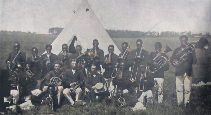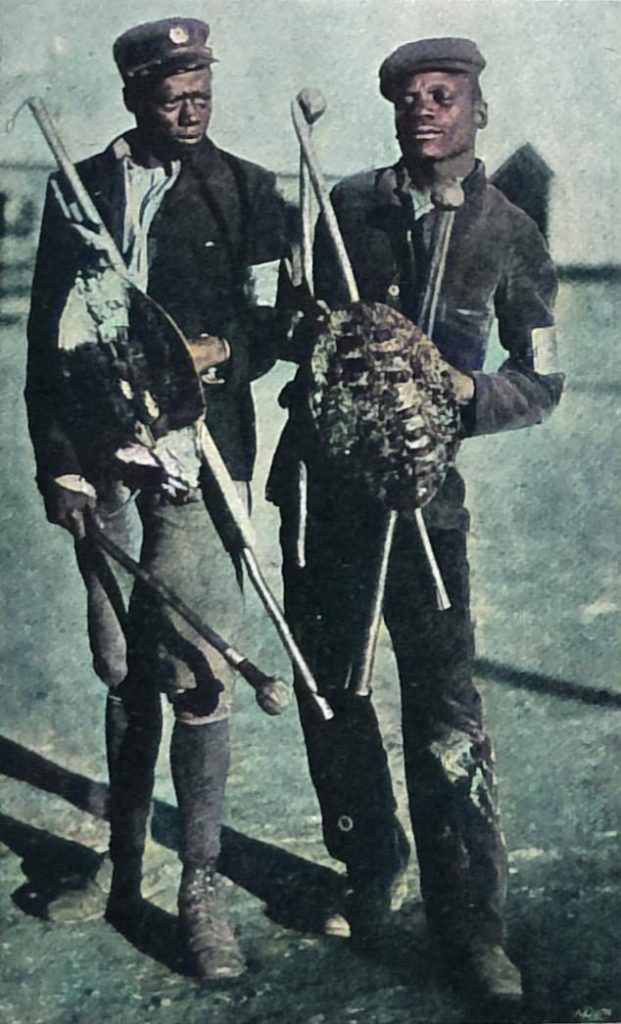 Heute sind schon zum Christentum übergetretene Zulus unter ihren Volksgenossen als Lehrer thätig, und Eingeborene sind als Polizisten um die körperliche Sicherheit ihrer Brüder besorgt. In der Hermannsburger Missionsstation Ehlanzeni ist es sogar gelungen, der Kunst Eingang zu verschaffen denn hier ist aus Zulus, die sich zum Christentum bekennen Bläserchor zusammengestellt worden. Vergleicht man die Musiker und die vorerwähnten Lehrer mit den Eingeborenen im Kriegsschmuck oder auch nur mit dem Medizinmann, so überzeugt man sich, daß selbst im Zululand in gewissem Sinn Kleider Leute machen. Außer den Eingeborenen und den Kaukasiern spielen dort noch Indier eine große Rolle namentlich als Kaufleute. Von den Sitten und Kulturanschauungen des Volkes erzählt uns ein Bild, das zwei junge Mãdchen darstellt, Schwestern, die im Begriff sind denselben Mann an demselben Tage zu heiraten Die christlichen Missionen werden im Zululand noch viel zu thun haben, ehe ihre Mission erfüllt ist.