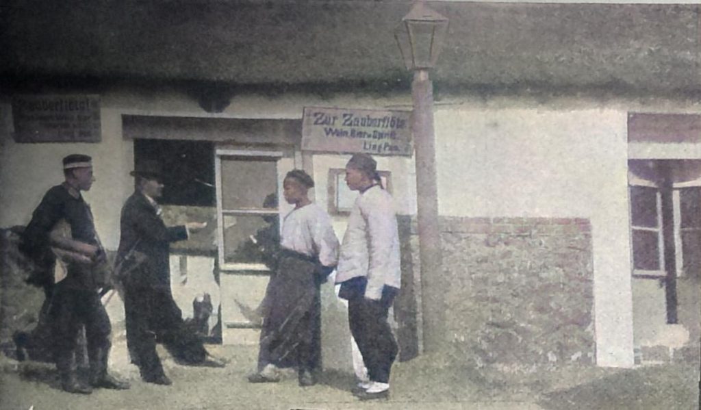 Ob die famose „Zauberflöte“ heute noch floriert, wo das Chinesendorf Tsingtau von Grund aus umgestaltet und neu aufgebaut wird? Doch der schlaue Wirt dürfte hierbei kaum zu Schaden gekommen sein.