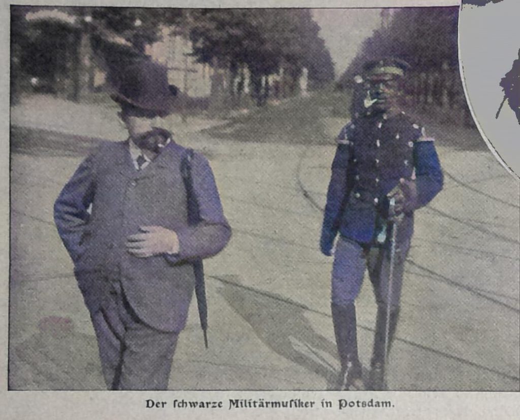 Zahlreicher als die Angehörigen der gelben Rasse sind in Berlin die „Schwarzen“ – das angebliche Schwarz besteht oft nur in einem zarten Bronzeton – aber sie nehmen zumeist bescheidene Stellungen ein. Unsere Aufnahmen zeigen u. a. ein farbiges „Mädchen für alles“ beim Einkauf, einen strammen dunklen Militär aus Potsdam und ein paar frische farbige Schulknaben, die sich sonst in nichts von echten Berliner Jungen unterscheiden.