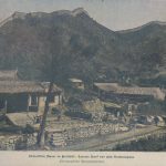 Die ersten Eindrücke der Landung waren die denkbar trübseligsten: es regnete in Strömen, an der Küste sah man die kahlen Hügel, das provisorische Lazareth aus einer Gruppe weiss gestrichener Baracken bestehend, und eine Anzahl kleiner, grauer, mit Stroh und Ziegeln gedeckter Häuschen, unter diesen auch die beiden sogenannten Hotels. Um an Land zu kommen, sollte man sich wohl oder übel eines jener kleinen offenen Chinesenboote – Sampan genannt – bedienen, eine nicht gerade verlockende Aussicht, angesichts der 20 Minuten langen Fahrt zwischen Schmutz und Gepäckstücken, des starken Regens und des unerlässlichen Durchwatens am seichten Ufer. Da kam in der Gestalt des Hrn. Bauinspektor Gromsch ein rettender Engel, in Oelzeug und Wasserstiefeln. Er nahm Redner in seiner Barkasse bis an die sogenannte „Chinesenbrücke“ mit, eine von Li-Hung-Shang begonnene Kriegsbrücke. Von hier musste er nun auf den weichen Lehmwegen bei unaufhörlichem Regen fast eine halbe Stunde lang bis ins Dorf waten, wobei der aufgeweichte Boden in die Stiefel drang.