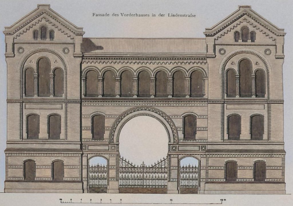 Zu der ursprünglich einzigen Synagoge derselben in der Heidereuter-Gasse und der grossen, 1859 bis 1866 erbauten, sogen. „Neuen Synagoge“ in der Oranienburger-Strasse, ist eine weitere Synagoge in der Kaiserstrasse und neuerdings noch eine solche in der Lindenstrasse getreten. Diesem jüngsten jüdischen Gotteshause ist die nachfolgende Mittheilung gewidmet.