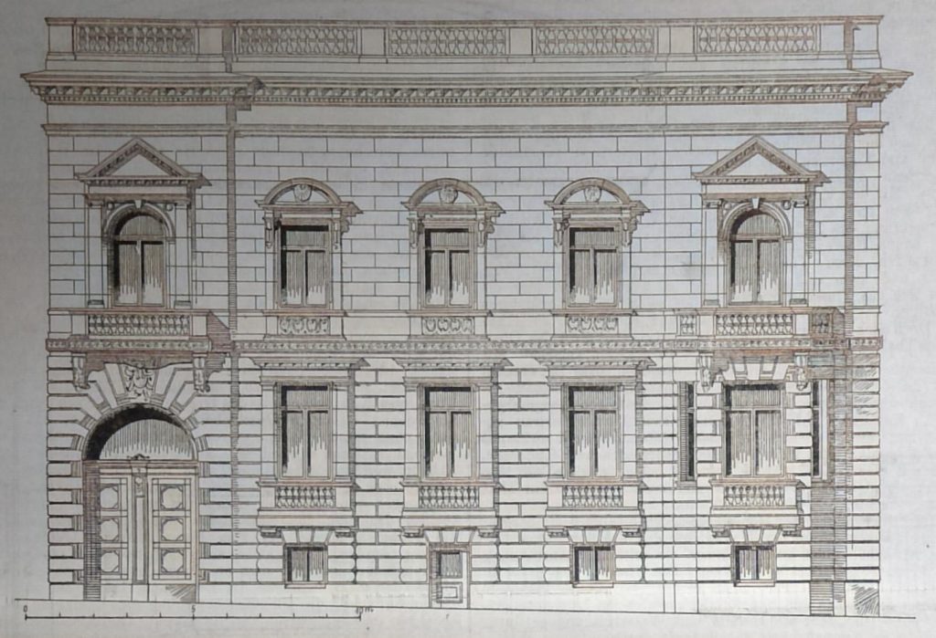 Die grosse zweigeschossige Diele, die durch Oberlicht erleuchtet ist und in welcher eine innere Treppe zum Obergeschoss empor führt, ist hier wesentlich als Gesellsehaftsraum aufgefasst und enthält demgemäss im Obergeschoss auch einen Orchester-Balkon. Dass ihr noch ein besonderer, geräumiger Vorplatz (mit dem zur Benutzung der Familie bestimmten Personen-Aufzuge) sich vorlegt, bildet neben den grossen Abmessungen der Gesellschafts-Räume und der ganz ungewöhnlich stattlichen Anlage der Eingangs- und Einfahrts-Halle eines derjenigen Momente, welche dem Hause ein überaus vornehmes Gepräge verleihen würden, auch wenn die Ausstattung dieser Räume eine weniger reiche und gediegene wäre. Einen eigenartigen Reiz hat die letztere dadurch erhalten, dass an sehr verschiedenen Stellen Theile alter Bauten, mannichfaltigen – namentlich italienischen – Ursprungs, Verwendung gefunden haben, die dann das Motiv für die ergänzende Ausstattung des betreffenden Raumes abgaben; hervor zu heben sind vor allem die Thüren der Bibliothek und die Decke des Speisesaals. Hieraus folgte von selbst, dass die Mehrzahl der Räume in Renaissance-Formen, mit reicher, zumtheil geschnitzter Wand- und Deckentäfelung durchgebildet ist, zu der sich in der Diele noch der Schmuck von Gobelins gesellt. Nur der Vorplatz zeigt eine Marmor-Architektur, während dem Salon und dem Damenzimmer eine Rococo-Ausstattung gegeben ist. Zu dem behaglichen Eindruck der Zimmer, die natürlich auch eine grössere Zahl selbstständiger Werke der Malerei und Plastik enthalten, trägt es nicht wenig bei, dass die meisten derselben mit Kaminen versehen sind. Letztere haben jedoch wesentlich dekorativen Zweck und werden nur gelegentlich zur Aushilfe benutzt, während die regelmässige Erwärmung des Hauses durch eine Zentralheizung bewirkt wird.