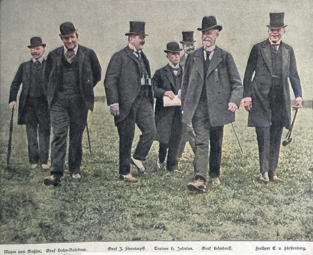 Für die Leute vom Turf, deren Sport auf einer hundertjährigen Erfahrung fest aufgebaut und scharf umgrenzt ist, erscheint es überraschend und nicht recht verständlich, wie man im Trabersport eigentlich immer noch unsicher tastet und z. B. über die einfachsten Grundbedingungen der großen Zuchtprüfungen kein Einverständnis erzielt hat. So ist das Wiener Derby für Vierjährige proponiert, das Berliner Derby für Dreijährige, zwei Konkurrenzen mithin, die eigentlich nur den Namen gemeinsam führen und im übrigen nie zu einem praktischen Vergleich herangezogen werden können. Dreimal der Reihe nach – 1890, 91, 92 – gewann Herr Bürenstein aus Berlin mit seinen Pferden das Wiener Derby, vorher und nachher haben deutsche und österreichische Ställe die Preise hier und dort sich nicht streitig gemacht.