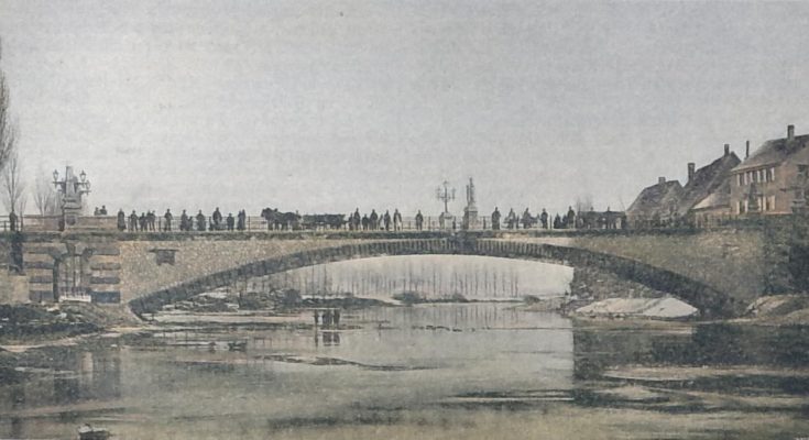Die Arbeiten begannen am 11. April 1893; der Gewölbeschluss fand am 7. August, die völlige Ausschalung am 4. September 1893 statt. Nach 7 monatlicher Bauzeit konnte die Brücke am 16. November 1893 dem Verkehr übergeben werden; sie hat sich seither tadellos gehalten. Die Gesammteinsenkung betrug nach Rechnung 146 mm, in Wirklichkeit nach der ersten Ausschalung am 17. August 93 mm, am 18. Januar 1894 dagegen flussauf 147, flussabwärts 144 mm.