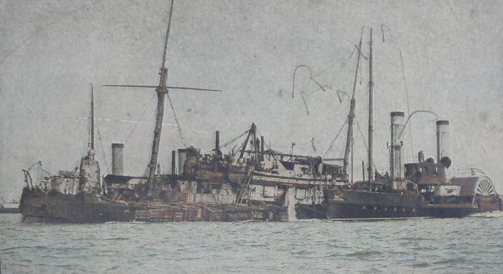 Wrack des englischen Panzerschiffes Belleisle nach der Beschiessung mit Lydditgranaten bei Portsmouth