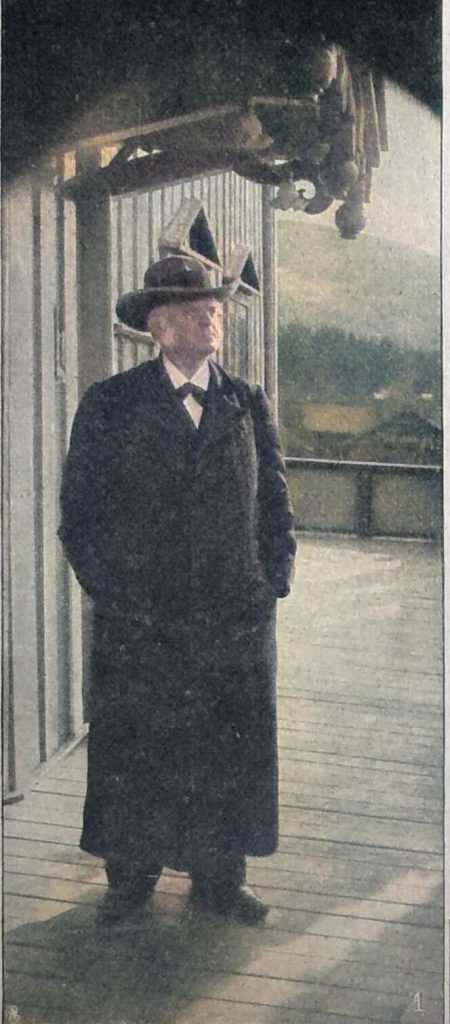 1905, von Ernst Friderici. Jahrzehntelang hatte Norwegen drei Könige. Den wirklichen Beherrscher, dann die Dichterfürsten Henrik Ibsen und Björnstjerne Björnson. Durch die Nordpolfahrt des Professors Fridtjof Nansen kam ein vierter hinzu. Aber diese Ziffer war zu hoch für das kleine Land; deshalb entfernte man den politischen König, wozu der jüngste und letztgenannte dieses vierfachen Kleeblatts unter der Hand eifrig mitgewirkt hat. Jetzt sind es also wieder nur drei.