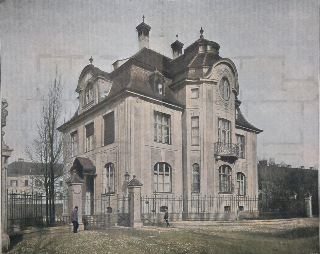 Das inrede stehende Gebäude, das Wohnhaus des Direktors am städtischen Krankenhause links der Isar, ist, in den Jahren 1893 u. 94 durch Hrn. Bauamtmann Carl Hocheder errichtet worden. Es kehrt seine Hauptfront der Lindwurm-Strasse zu, von der es durch einen breiten Vorgarten geschieden wird; seitlich schliesst sich dem letzteren ein besonderer Hausgarten an.
