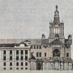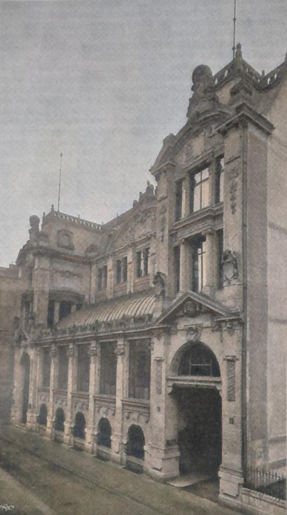 Durch das vor der Hinterfront befindliche grosse Hof- und Gartengelände erhalten auch,die an dieser Front ben Räume reichlich Licht. Ausserdem sind die besonders weiten und hohen Fensteröffnungen der Büreaus mit eisernen Fenstern versehen, deren schwache Konstruktion nur wenig Lichtfläche fortnimmt.