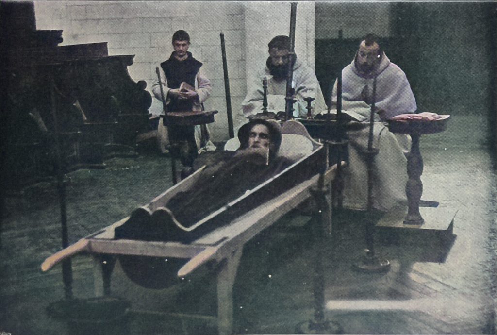 So führt man den Brüdern das Ende vor Augen, und sie ertragen schweigend den Tod, wie sie das Leben ertrugen. Alle Mönche sind um den sterbenden Bruder versammelt, immer schweigend, immer im Gebet.