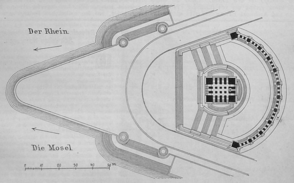 Wir glauben, dass alle Betheiligten und nicht zum letzten die Angehörigen der deutschen Kunst, Ursache haben, sich dieses siegreichen Erfolges von Herzen zu freuen. Den grössten Dank schuldet den beiden Meistern freilich die Stadt Koblenz. Denn durch den Besitz dieses Denkmals, das nicht nur die Ansicht von Rhein und Mosel her, sondern auch den Blick von den breiten, vermuthlich theilweise mit Gartenanlagen zu schmückenden Kaiflächen an beiden Flüssen beherrscht, ist sie mit einem Schlage zu einem künstlerischen Range erhoben worden, an den der bisher von ihr behauptete – trotz aller sonstigen Schätze des Ortes – doch nicht entfernt hinan reichte.