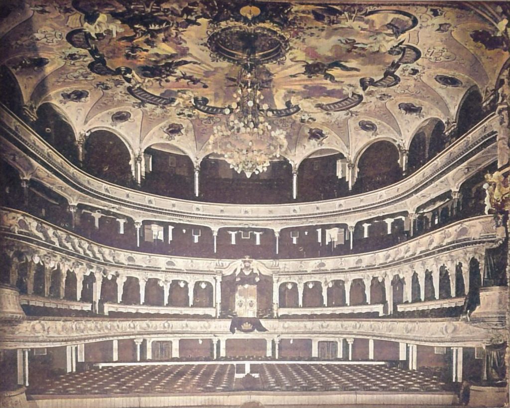 Im November 1892 fielen die den Platz schmückenden Bäume, Mitte Dezember wurde mit den Erdarbeiten begonnen und am 22. Febr. 1893 der erste Stein gesetzt. Von nun an wurde der Bau mit bemerkenswerther Umsicht und Emsigkeit gefördert, und in den letzten Monaten auch Abends auf der künstlich beleuchteten Baustelle mit aller Anstrengung gearbeitet, so dass schon am 16. Oktober 1894 die Eröffnung des Theaters erfolgen konnte.