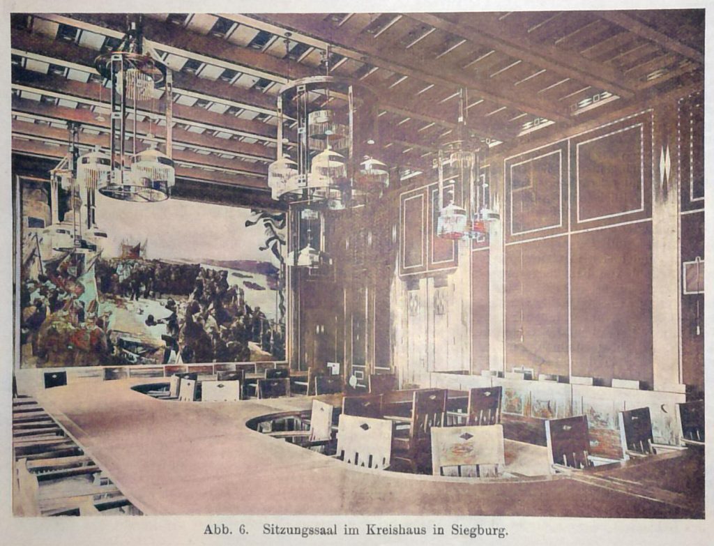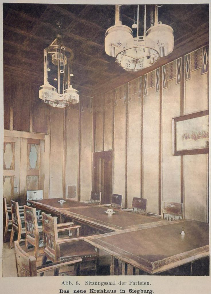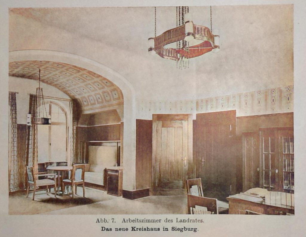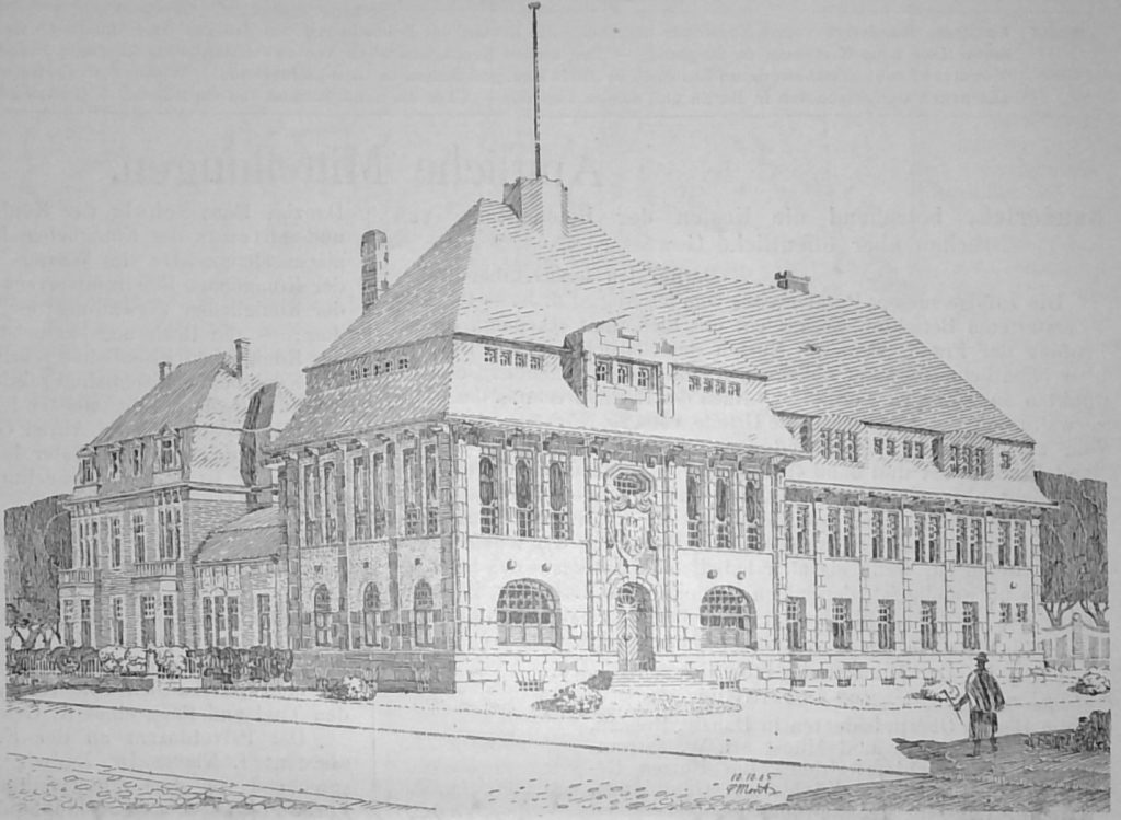 Auf Grund eines engeren Wettbewerbs (Abb. 1) wurde Regierungsbaumeister Karl Moritz in Köln mit der Ausarbeitung der Pläne und der Leitung des Baues für das Kreishaus in Siegburg beauftragt.