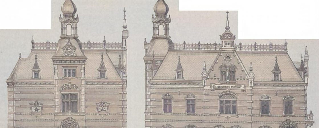Vom Architekten erstellte Beschreibung des 1890 neu erbauten Postgebäudes in Rochlitz, Sachsen.