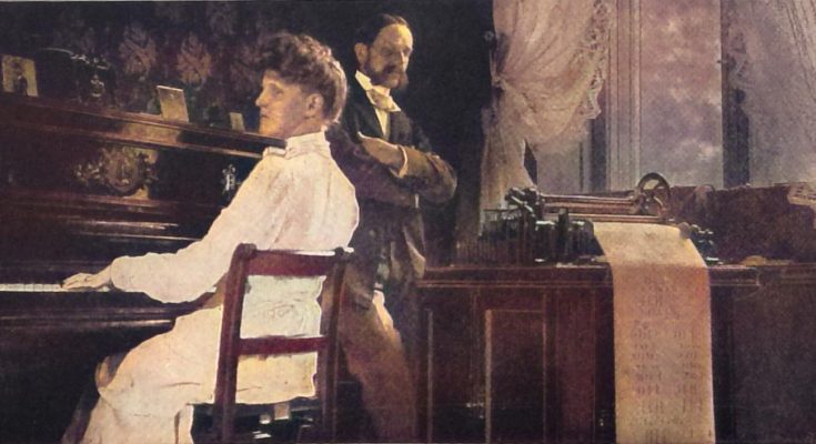 Ein Amerikaner, Mr. William Thanle, der sich in Oberloßnitz bei Dresden ankaufte und selbst als hervorragender Klaviervirtuose und Komponist sich vielfach in den Dienst der Wohlthätigkeit stellte, baute eine Maschine, die es ihm ermöglicht, eine eben gespielte Komposition oder Improvisation festzuhalten und auch, sofort nach dem Vortrag, auf automatisch-mechanischem Weg wiederholen zu können, so daß der Komponist – unbekümmert um das Niederschreiben – ohne Störung seiner Stimmung folgen kann und doch seine Schöpfung dauernd erhält.