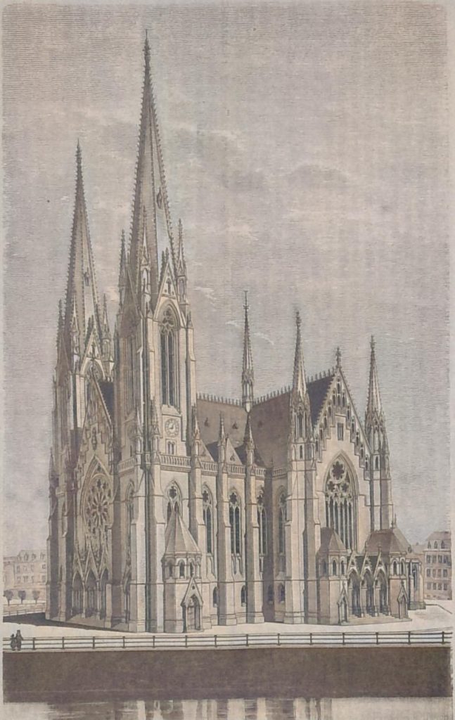 - Die Thürme an das erste, als Vorhalle auszubildende Gewölbjoch zu verlegen und eine wirkungsvollere Gestaltung der Thurmansicht anzustreben.