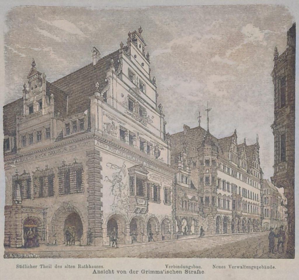 – Dass thatendurstige Architekten, wie sie Leipzig in reicher Fülle besitzt, diese Sachlage schmerzlich empfinden, ist zu natürlich, als dass man einen Stein auf sie werfen könnte, selbst wenn sie unter diesem Eindrucke in einer dunklen Stunde zu einem Angriff auf den Fortbestand des alten Rathhauses sich hätten hinreissen lassen. Dem wohl nicht mehr fernen Ausgange der Angelegenheit sehen wir mit begreiflicher Spannung, aber mit den besten Erwartungen entgegen. Ideale Rücksichten wie Zweckmässigkeits-Gründe sprechen für den Grundgedanken des vom Rathe vorgelegten Entwurfs und es wäre seltsam, wenn eine Körperschaft, wie die Leipziger Stadtverordneten-Versammlung sich nicht für beide sollte erwärmen können.