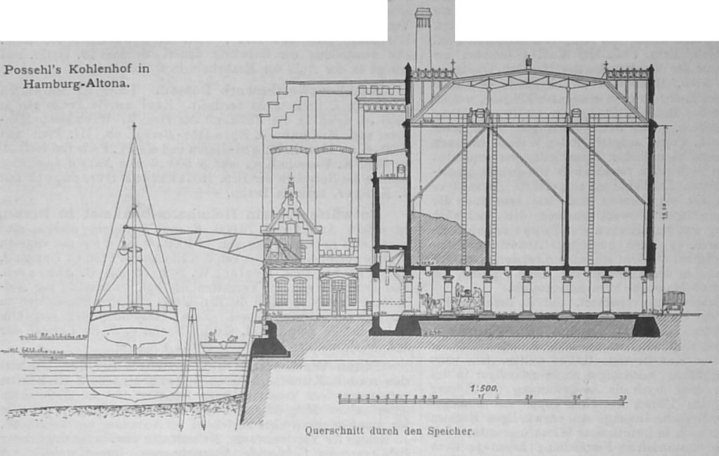 Am 6. Mai d. J. ist in Altona eine industrielle Anlage von hervorragender Bedeutung, der durch die Fırma L. Possehl & Co.in Hamburg-Lübeck errichtete „Kohlenhof“, dem Verkehr übergeben worden.