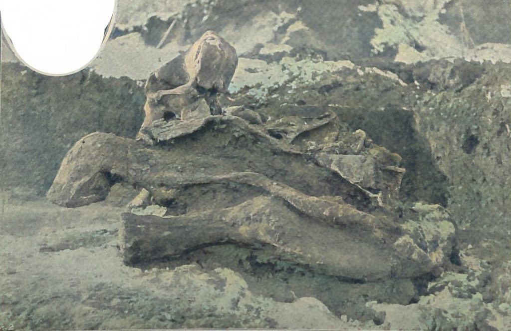 Am 10. September traf die Expedition am Fundort ein, der Jubel beim Anblick des viele tausend Jahre hier ruhenden Geschöpfes war unbeschreiblich. Seine Lage war vertikal. Das Tier muß gestürzt sein, während es seine Nahrung suchte, und so in die Eisspalte, die überwachsen war, geraten sein. Die Vorderbeine waren ganz gekrümmt, besonders das linke, ein Beweis dafür, daß das Tier bemüht war, sich zu retten, doch war der Körper zu schwer, die Hinterfüße glitten aus und blieben in horizontaler Lage unter dem Leib liegen, der alsbald eingefroren ist, nur so konnte sich der Kadaver die vielen Jahre (nach Annahme von Herz müssen es wohl 8000 sein) so frisch erhalten, wie ihn der Gelehrte auffand. Herz behauptet, daß das Tier unbedingt im Norden gelebt hat und nicht durch die Sintflut angeschwemmt ist. Der Fundort befindet sich auf einem mächtigen Absturzgebiet von 1 ½ Werst Länge. Unter dem oberen 60 Meter hohen Rand des Absturzgebiets traten unter einer schmalen Humusschicht und einer über 2 Meter dicken Erdschicht mächtige vertikale Eiswände von 5 bis 8 Meter zu Tage, die frei nach Osten lagen, vollkommen der Sonnenhitze ausgesetzt. Nach Ansicht von Otto Herz hat man es hier mit einem in Auflösung begriffenen fossilen Gletscher zu thun und keinen sogenannten Schneelehnen, die sich bei der fortwährenden Sonnenwärme nicht so lange hätten erhalten können. Das Eis enthielt eine Menge von Luftbläschen. An diesem Ort also lag der vorsintflutliche Riese vollkommen eingefroren. Es galt nun, ihn noch im Lauf des Winters von hier fortzuschaffen, da der Sommer zum Transport unmöglich war, ja das von den Bergen herabstürzende Frühjahrswasser konnte ihn direkt herunterwaschen.