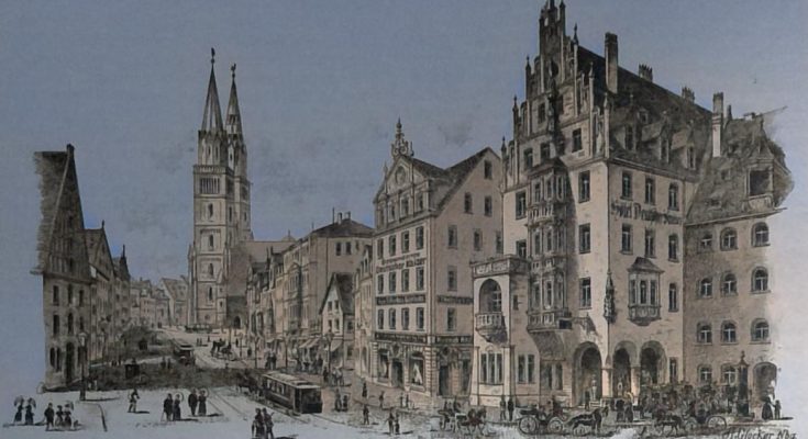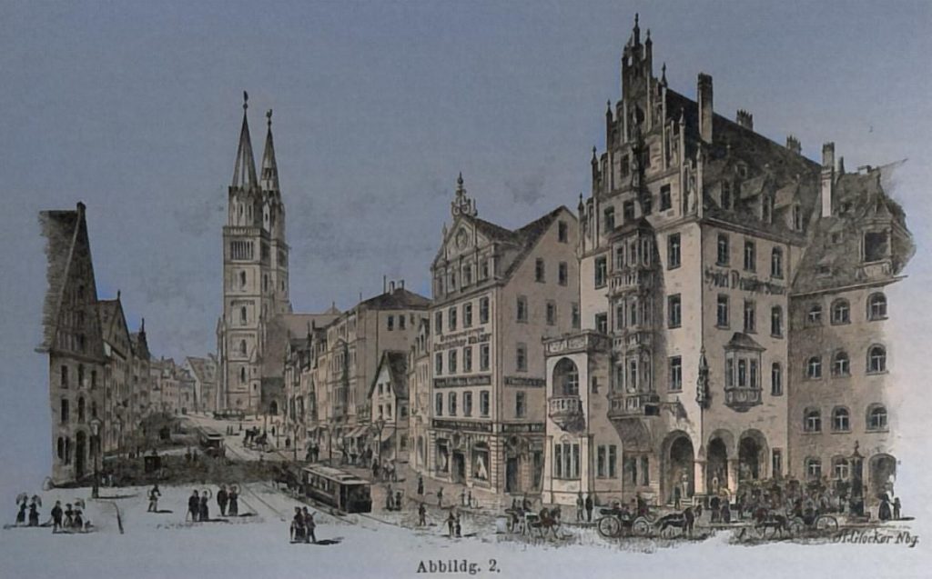 Derselbe wurde in der Zeit vom Juli 1888 bis zum November 1889 auf Veranlassung des Hrn. Höteliers Christian Wenz in Nürnberg nach Plänen des Hrn. Architekten Konradin Walther, Professor an der kgl. Kunstgewerbe-Schule in Nürnberg erbaut.