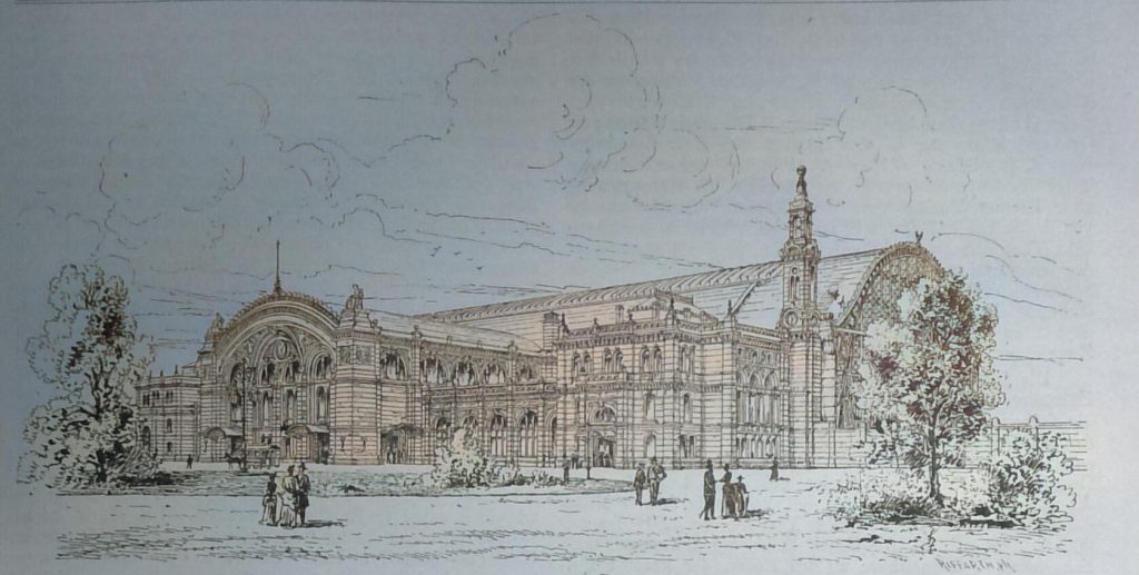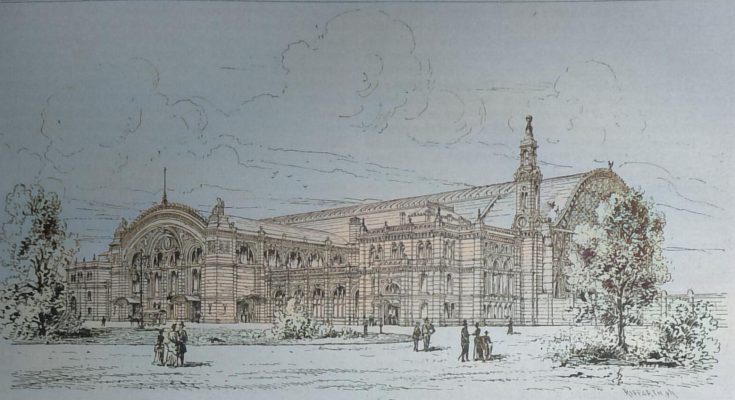 Architekt: Professor Hubert Stier in Hannover. Wer von den Fachgenossen in diesem Jahre Bremen besucht, wird neben den bekannten älteren Monumental-Bauten der Stadt und den reizvollen baukünstlerischen Augenblicks-Schöpfungen, die Joh. G. Poppe für die Ausstellung erfunden hat, in erster Linie den jüngsten monumentalen Neubau des Orts, den seitens der preussischen Eisenbahn-Verwaltung nach dem Entwurfe H. Stier’s ausgeführten Haupt-Personen-Bahnhof seiner Aufmerksamkeit und seines Studiums für würdig erachten.