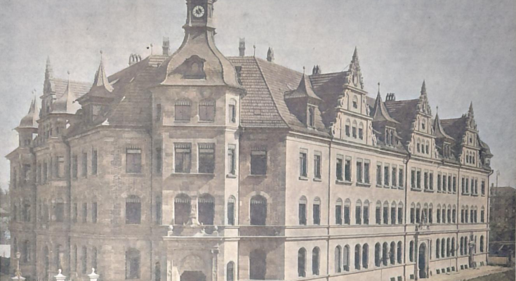 Das ganze Gebäude fasst 1220 qm überbaute Fläche, wurde im August 1896 begonnen und am 1. April 1898 vollendet, nachdem die Büreaus bereits Anfangs Februar bezogen werden konnten.