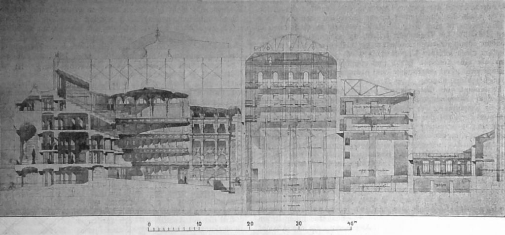 Von einer Beschreibung der Einzelheiten des Entwurfs glauben wir Abstand nehmen zu können, da die Beigabe eines Durchschnitts über die wichtigsten Punkte der Anordnung Aufschluss giebt. Es wird sich im wesentlichen um Angabe einiger Zahlen zu handeln haben.