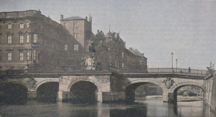 Nachdem so die Grundsätze, nach welchen die Ausführung erfolgen sollte, festgelegt waren, konnten sofort die Vorbereitungen für den Neubau der Brücke in Angriff genommen werden, die bisher noch als einziges Hinderniss der Eröffnung der im übrigen fertigen neuen Schiffahrtsstrasse im Wege stand. Am 19. Mai d. J. konnte bereits eine unterhalb der jetzigen Brücke ausgeführte Nothbrücke dem Verkehr übergeben werden, und es wurde dann sofort der Abbruch der alten Brücke in Angriff genommen, nach dessen Beendigung die neue Schiffahrts-Strasse im September d. J. eröffnet wurde. Ein Bild von der Erscheinung der alten Brücke kurz vor dem Abbruch ist in Abbildg. 1 wiedergegeben, nach einer im Besitz des Märk. Prov.-Museums befindlichen Aufnahme. Mit dem Abbruch der jetzigen Brücke verschwindet die einzige monumentale Brücke aus älterer Zeit, die Berlin noch aufzuweisen hatte, nachdem bereits 1890 die ein Jahrhundert jüngere Herkules-Brücke beseitigt wurde, welche aber in der ehemaligen Albrechtshofer, jetzigen Herkules-Brücke am Lützowplatz eine theilweise Auferstehung gefeiert hat. Bei der hervorragenden Bedeutung, welche die Lange Brücke sowohl in architektonischer und künstlerischer Beziehung, namentlich mit Rücksicht auf das Denkmal des Grossen Kurfürsten, das sie trägt, als auch in Beziehung auf die Geschichte Berlins besitzt, sei es gestattet, an dieser Stelle auch auf die Schicksale dieses Bauwerks, das in seiner jetzigen, nur wenig veränderten Gestalt auf ein 200 Jahre langes Bestehen zurückblicken kann, etwas näher einzugehen.