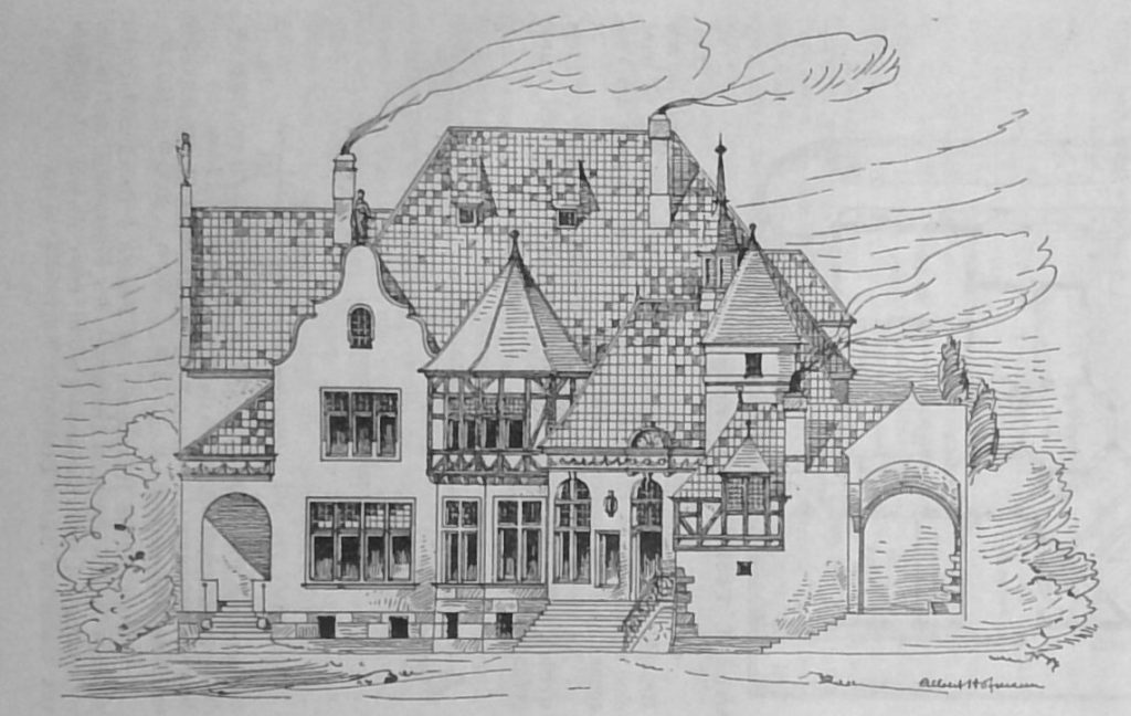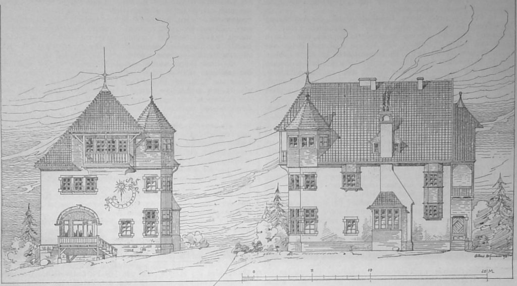 Ich glaube, aus diesen Gesichtspunkten heraus ist die Entwicklung des neueren Einfamilienhauses in Deutschland zu erklären und zu verstehen, wie starke fremde Einflüsse, namentlich englische und amerikanische, nur vereinzelt solche der in ihrer Empfindungsweise von dem deutschen Gefühl grundverschiedenen romanischen Völker, Eingang finden konnten. Das prächtige, ja majestätische ihrer Behausungen sagte deutscher Empfindung weniger zu, als das englisch-amerikanische cheerful, homelike, das derselben selbst da verwandter erscheinen musste, wo es mit einem der deutschen Seele fremden gewissen krankhaften Heimweh nach der Kirche vermischt war. Denn Kirche und Haus sind beim Engländer und Amerikaner Einrichtungen, die vielfach verwandte Beziehungen haben. Seine „spiritual graces“ sind oft „born of religious beliefs and hopes“. Aus diesen Gesichtspunkten heraus ist es aber auch zu verstehen, wie die fremden Einflüsse mehr und mehr zurücktraten und das deutsche Element seine Herrschaft zu erringen trachtete. Die hier besprochene Gruppe von Beispielen enthält Beläge nach beiden Richtungen.