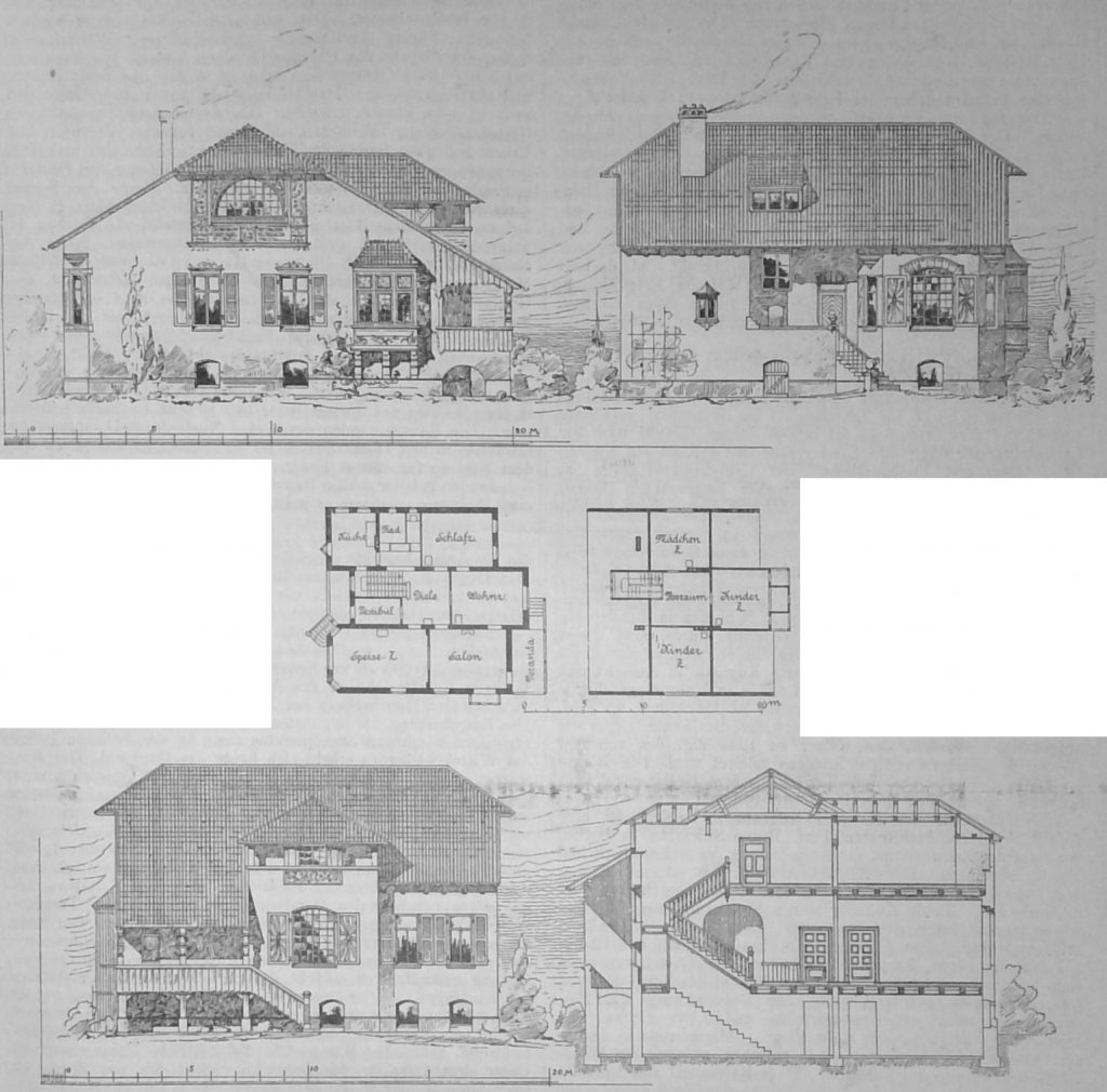Wenn wir es im Nachstehenden unternehmen, eine kleine Gruppe von deutschen Einfamilienhäusern in Wort und Bild zu schildern, die zumtheil ausgeführt, zumtheil aber auch nur auf das Papier gebannte Gedanken einer phantasiereichen Seele geblieben sind, so ist mit dieser Veröffentlichung keinesfalls die Bekräftigung irgend einer Tendenz nach irgend einer Richtung verbunden.