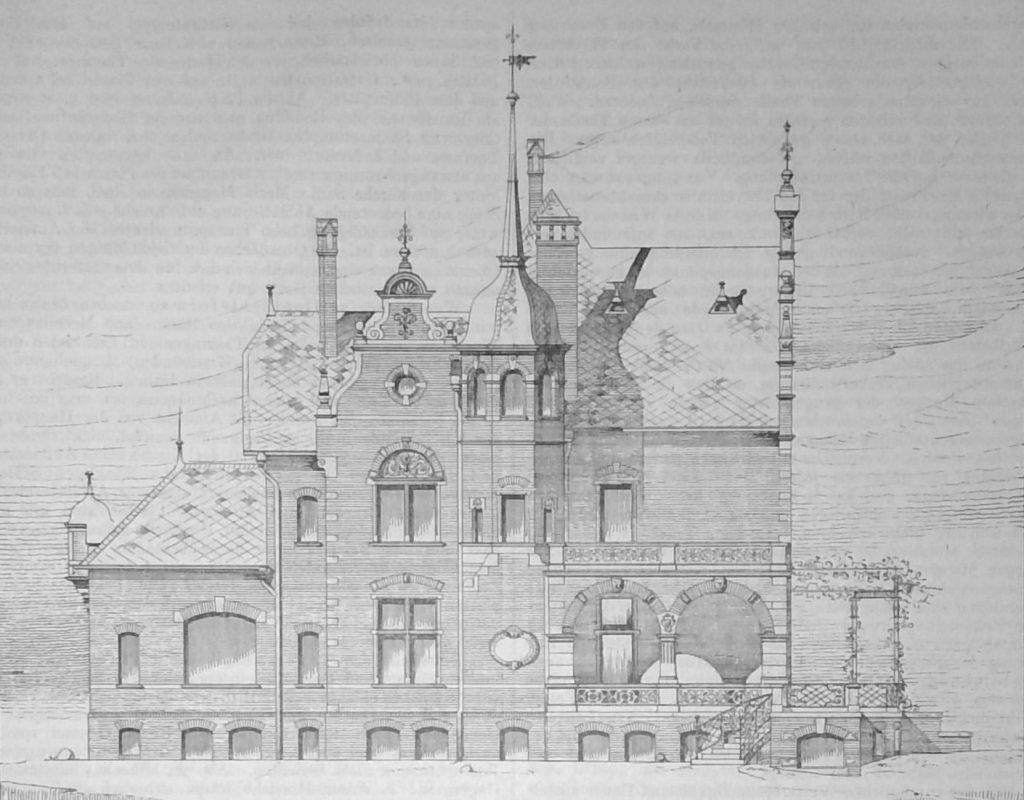 Der Bau ist ein Ziegelfugenbau mit Verwendung von Sandstein für die architektonische Gliederung. Im übrigen entheben die beigegebenen Abbildungen, die ein zum Verständniss ausreichendes Bild des Aeusseren sowie namentlich auch des Charakters der inneren Ausstattung geben, von einer weiteren Beschreibung. Wohnlichkeit, physisch und psychisch genommen, ist hier wie dort das bewegende Grundmotiv.