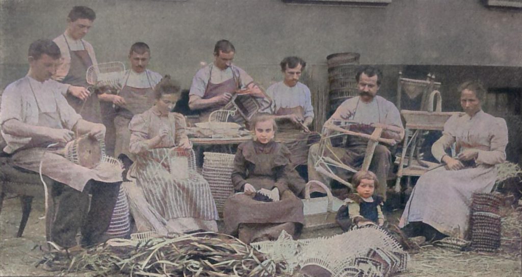 Damals war die Korbmacherei eben nur ein Nebenerwerb. Die meisten Dörfler lebten vor allem noch von dem Ertrag ihrer Parzellen und beschäftigten sich nur im Winter mit Korbflechterei. Im Frühjahr zogen sie mit einem bepackten Schiebkarren im nächsten Lande herum. War aber Feldarbeit zu verrichten, so ward der Vorrat einem Nachbar mitgegeben. Nebenbei verdienten sich die Dörfler auch noch einiges mit Flachspinnen. Dieser zusammengesetzte, unentwickelte Erwerb währte jedoch nur bis zur Entwicklung des Verkehrs.