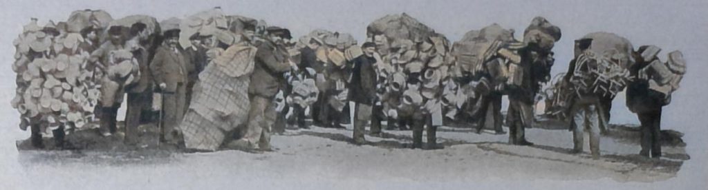 Und es ist wirklich wie ein Bild aus vergangenen Zeiten, wenn die Flechter mit schier ungeheuerlichen Mengen, in denen sie fast verschwinden, in denen sie oft wie sonderbare Pflanzen aussehen, am Lieferungstag bei dem Großkaufmann antreten, um ihre Arbeiten abzusetzen.