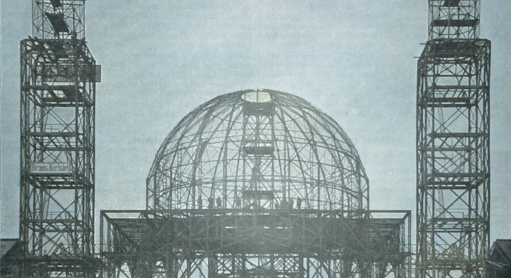 Es wären hier, zieht man den Vergnügungspark und die Kolonial-Ausstellung mit in diese Aufzählung ein, noch für mehr als 200 kleine Baulichkeiten die Hersteller zu nennen und wir würden sie auch nennen, wenn uns nicht durch den Raum natürliche Grenzen gesteckt wären. Diese zwingen uns, in den folgenden Aufsätzen nunmehr unmittelbar zur eigentlichen Bauausstellung, zum Bauhof überzugehen.