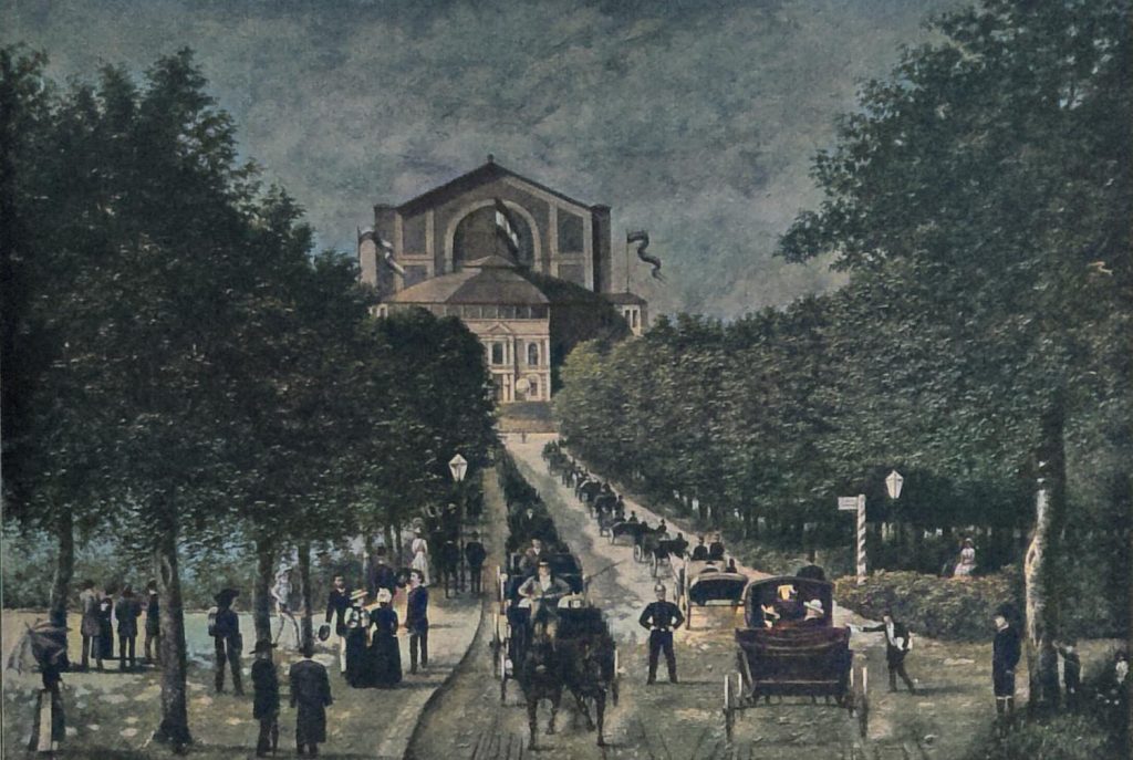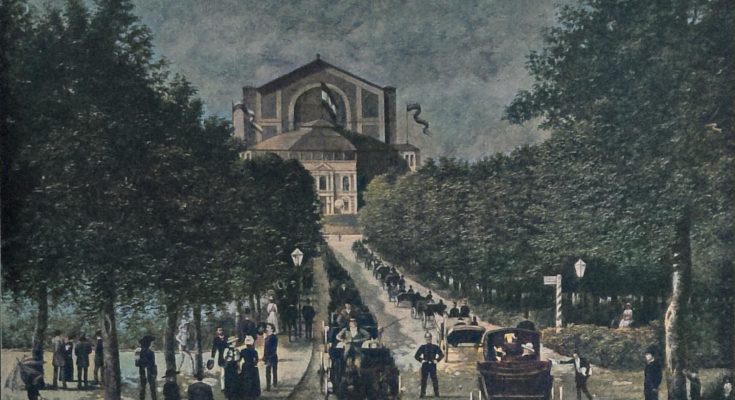 Nachmittags um vier Uhr, wenn Geist und Körper noch frisch sind, beginnen in der Regel die Aufführungen. Gleich einer unendlichen Schlange ziehen sich die Wagen nach dem Festspielhaus, das etwa eine Viertelstunde vor der Stadt einsam auf einer Anhöhe inmitten von schattenspendenden Bäumen und Sträuchern erbaut ist. Die Menge des Publikums sammelt sich auf dem freien Platz vor dem Theater, jeder erhöht noch die eigene Stimmung, indem er dem andern von dem Kommenden spricht.
