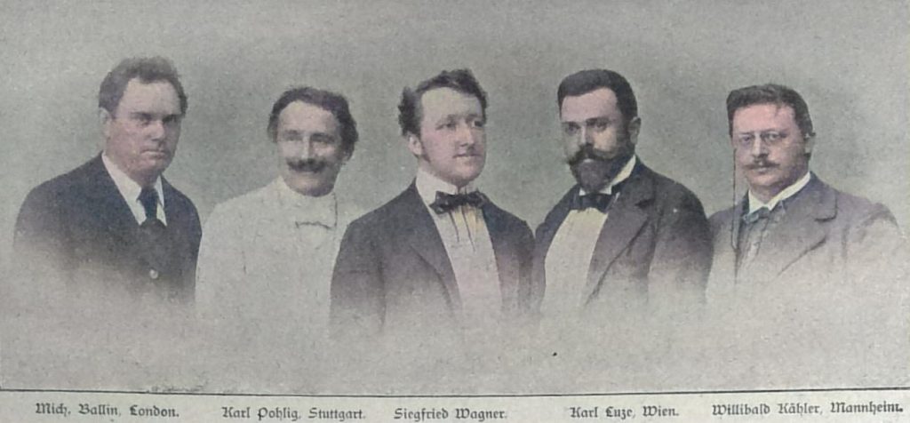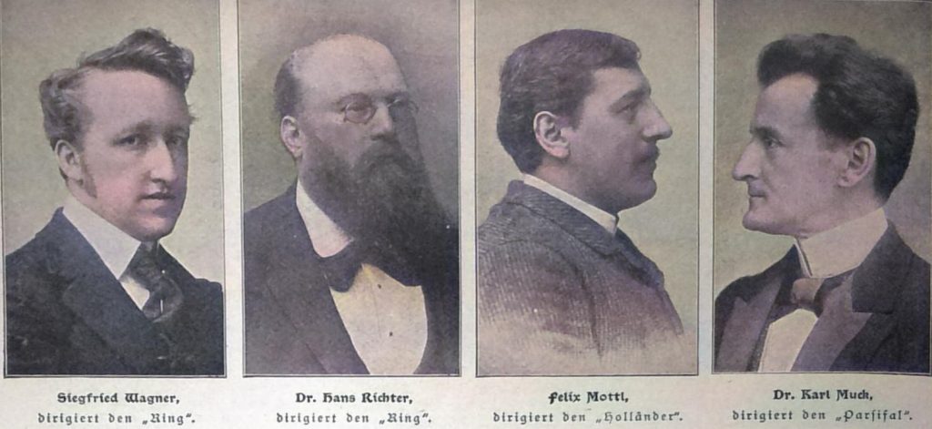 Als im Jahr 1883 Richard Wagner, fern von der Heimat, in Venedig verschied, sah man vielfach der Zukunft Bayreuths mit bangen Zweifeln entgegen. Bald jedoch stellten sich alle Befürchtungen als unbegründet heraus; Frau Cosima nahm vertrauensvoll und entschlossen das Heft in die Hand, sie führt seitdem das Scepter, unterstützt von vortrefflichen Helfern und Beratern. Ihre Mitarbeiter dürften nicht so bedeutend sein, wie sie sind, wenn es nicht hin und wieder zu Meinungsverschiedenheiten und Reibungen kommen sollte. Indessen ist, was über solche Kulissengeschichten manchmal in die Oeffentlichkeit drang, ohne Zweifel sehr übertrieben. Wäre Frau Cosima die herrschsüchtige Autokratin, als die sie von ihren Gegnern gern hingestellt wird, dann würden die alten Kunstkämpen nicht so treu zu ihr halten. Unter den Dirigenten, die bei den Festspielen in diesem Sommer mitzuwirken berufen sind, findet sich wieder Hans Richter, der auch im Jahr 1876 die erste Aufführung des „Rings“ geleitet hat. Mit ihm abwechseln wird Siegfried, der Sohn des Meisters, der so durch das Zusammenwirken mit Richter befähigt wird, die Tradition aufrechtzuerhalten. Neben ihnen wird voraussichtlich auch Felix Mottl den Dirigentenstab führen, der 1886 zum erstenmal „Tristan und Isolde“ leitete und jetzt den „Fliegenden Holländer“ leiten soll. Als eine für Bayreuth neue Erscheinung reiht sich ihnen der Berliner Hofkapellmeister Dr. Karl Muck als Dirigent des „Parsifal“ an.