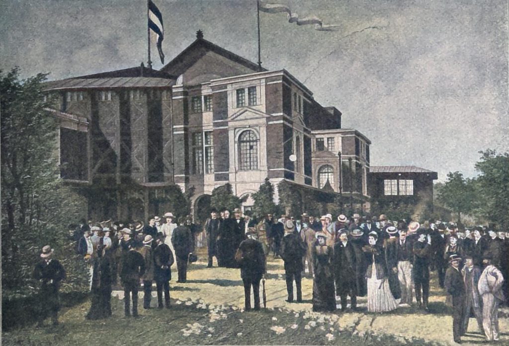 Da ertönen Fanfaren, nach allen Himmelsrichtungen wird stilvoll ein Wagnersches Motiv geblasen, und alles stürmt in den Zuschauerraum. Ein Wispern und Flüstern geht durch das große Haus; doch bald erlöschen die Lichter, es wird stockfinster und zugleich mäuschenstill. Die ersten Akkorde erklingen aus dem unsichtbaren Orchester, die Aufführung beginnt. Wenn der Vorhang zum letztenmal fällt, lagert bereits die Nach über der Erde. Ein minutenlanger Beifallssturm braust durch das Haus, aber niemand von den Mitwirkenden erscheint vor der Rampe. Der Dank des Publikums wird nur für den großen Verewigten in Empfang genommen Nun zurück in die Stadt, wo sich in allen Kneipen beim Glas Bier und einfachem Mahl dieselben begeisterten Menschen zusammenfinden, die sich vorher im Festspielhaus begrüßt haben. Die Auserwählten aber werden in der Wagnerschen Villa „Wahnfried“ empfangen, wo sie neben Frau Cosima auch die großen Künstler treffen. Hier, wo sein Wähnen Frieden fand, ist auch die körperliche Hülle des Meisters zur Ruhe bestattet.