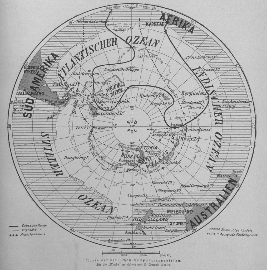 Es muß zunächst festgestellt werden, daß die Erörterungen über die deutsche Südpolarexpedition, so verschieden sie auch Einzelheiten beurteilen mochten, alle in einen Glückwunsch an das Deutsche Reich ausklangen, daß es sich zu diesem Unternehmen entschlossen hat und so den andern Nationen mit einer That voranzugehen gewillt ist, die nicht allein durch die Erschließung des letzten unbekannten Erdraums von kontinentaler Größe wissenschaftliche Resultate von hoher Bedeutung verspricht, sondern auch durch die praktische Bethätigung der nautischen Kräfte der Nation an dem größten und schwierigsten Problem der Meere, das die Erde noch stellt, eine gewaltige Hebung an Deutschlands Ansehn zur See herbeizuführen bestimmt ist. Denn in der glücklichen Lösung solcher Probleme bei der Fahrt durch unerforschte Meeresräume haben auch die älteren seefahrenden Nationen stets ihre praktische Schulung gesucht und ihre Erfolge in der Seegeltung begründet.