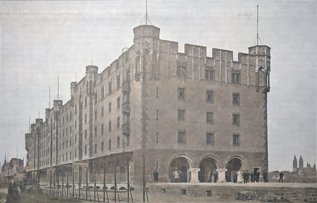 Zur Hebung und Bewegung der Drehbrücke, welche über den verlegten 21 m breiten Hafenmund neu erbaut wurde, dient im Kleinen die gleiche Kraftübertragungsart. Elektromotoren, Presspumpe, Standrohr und Belastungsgewicht sind in der ehemaligen Durchfahrt des Malakoff-Thurmes untergebracht. Die Ein- und Ausfahrt der Brücke vollzieht sich durch blosse Hebelstellung spielend in 1 Minute. In dem aus den 40er Jahren dieses Jahrhunderts stammenden Malakoff ist auch die Wohnung des Brückenwärters eingerichtet worden.