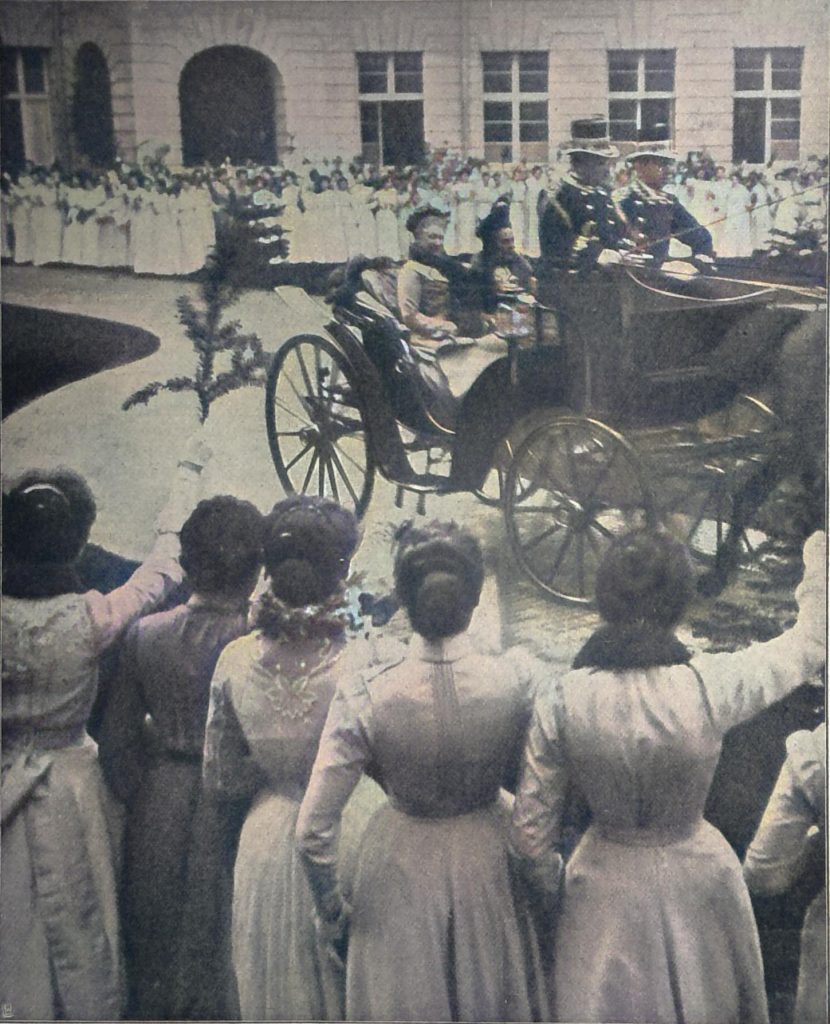 Dieser Termin, der Geburtstag Kaiser Friedrichs, war gewählt worden in Erinnerung an dessen Gemahlin, die während 35 Jahren als Protektorin das Wirken des Lettevereins unterstützt und gefördert hat. Zwei Zahlen mögen genügen, um zu zeigen, wie großartig sich der Verein entwickelte: im Jahr 1867 bildete er 40 junge Mädchen aus, heute entläßt er aus seinen verschiedenen Schulen jährlich etwa 2000 Schülerinnen in das Erwerbsleben. Der Verein, dessen segensreiche Thätigkeit die allgemeinste Anerkennung findet, hat die Ehre, nach der Kaiserin Friedrich unsere jetzige Kaiserin seine Protektorin nennen zu dürfen, die ihr Interesse an der Sache auch jetzt wieder durch ihre persönliche Teilnahme an der Einweihung des neuen Hauses bekundete, der sich, ein ebenso imposanter als praktischer Bau, am Auguste Viktoriaplatz erhebt.