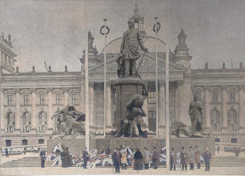 Das Nationaldenkmal für Bismarck auf dem Königsplatz vor dem neuen Reichstagsgebäude somm am 3. Juni feierlich in Gegenwart des Kaisers enthüllt werden.