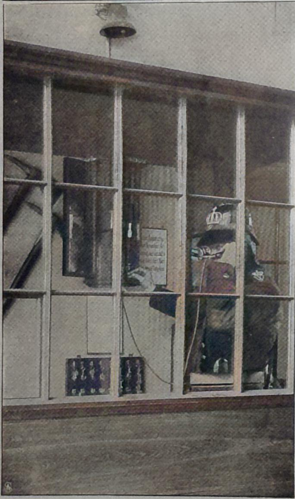 In erster Linie muß natürlich von den Angestellten erwartet werden, daß ein Feuer nicht durch deren eigenes Verschulden entsteht, und daß die Verbote, die über den Gebrauch von Streichhölzern und über das Rauchen erlassen sind, aufs peinlichste befolgt werden. Die Angestellten müssen genau über alle Hülfsmittel orientiert sein, die ihnen bei Ausbruch eines Feuers zu Gebote stehen: wie die Benutzung der Feuermelder, das Herablassen der Rolljalousien, das Oeffnen der Rauchabzüge und genaue Kenntnis der Ausgangsverhältnisse.