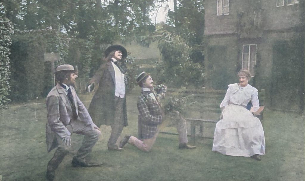 Das Naturtheater, 1758 vom Prinzen Heinrich, de großen Königs Bruder, geschaffen, liegt versteckt in einem lauschigen Winkel des schönen Parks. Die Bühne, vom Zuschauerraum durch eine Tannenhecke getrennt, ist etwa dreiviertel Meter erhöht und wird nach hinten zu ganz schmal die Kullissen werden abwechselnd von Tannen- und Buchenhecken gebildet. Der amplhitheatralische Zuschauertaum faßt nahezu 2000 Personen. Kopf an Kopf gedrängt saß und stand das Publikum in diesem Theatersaal, dessen Plafond der herrlichste blaue Himmel war, dessen Wandschmuck das duftige Waldgrün bildete. Um halb Fünf begann die Vorstellung. „Kyritz-Pyritz“ wurde gegeben. Darsteller waren Mannschaften des Gardeschützenbataillons. Natürlich wurden auch die Damenrollen von Männern gespielt.