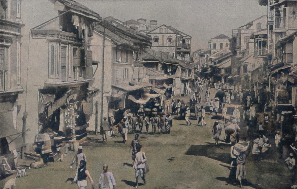 Das Leben und Treiben auf den Straßen Bombays ist derartig lebhaft, bunt und wechselvoll, die Bevölkerung vom tiefsten schwarz bis zum hellsten Weiß so mannigfaltig, der Stil der Häuser, der Bau der Wagen so eigenartig – kurz, das ganze Straßenbild so, wie man es kaum noch in irgendeiner Stadt des Orients findet.